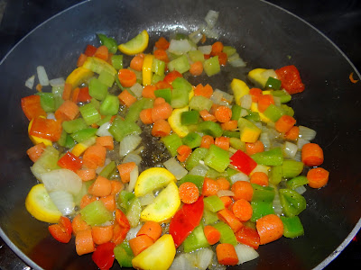 1 small or 1/2 medium onion diced and sauteed for 8 minutes in oil/butter mixture