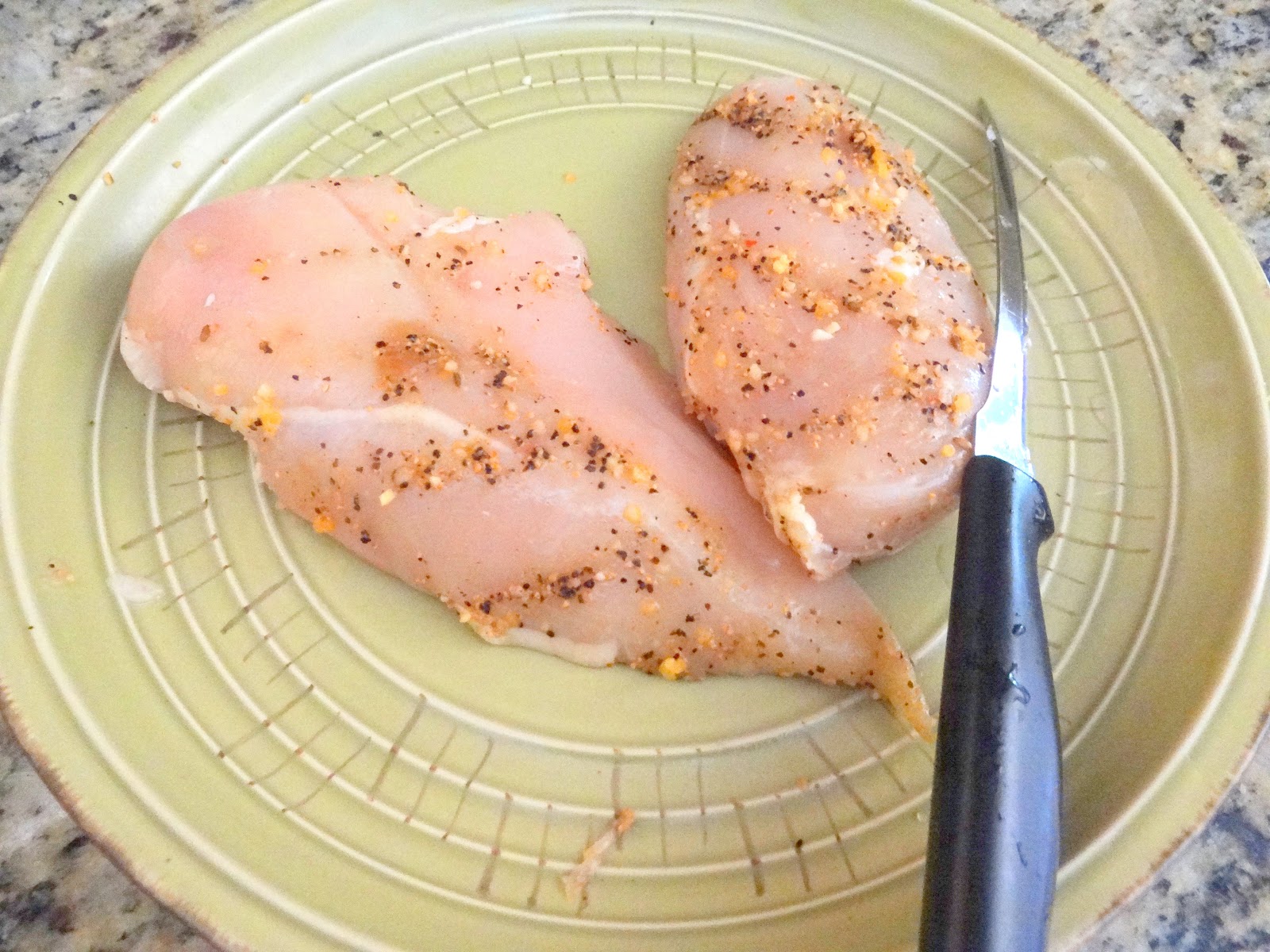 3 Chicken Breasts seasoned with garlic salt, season salt and lemon pepper