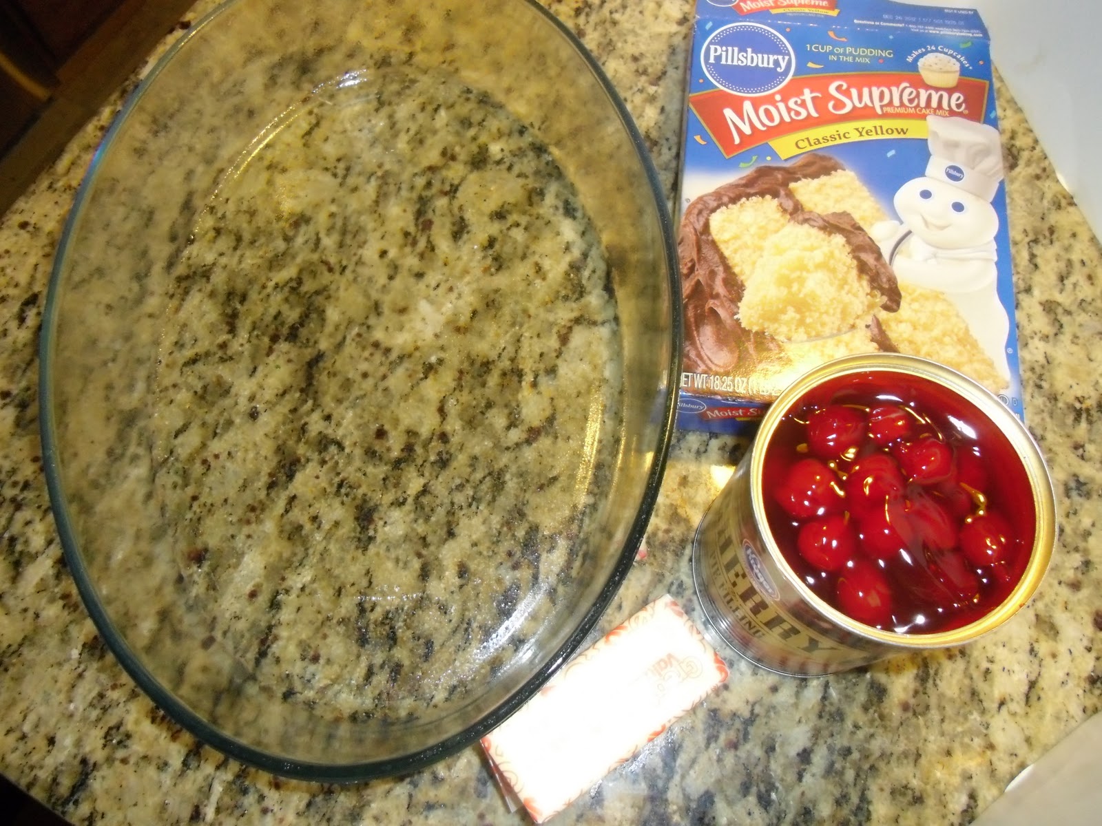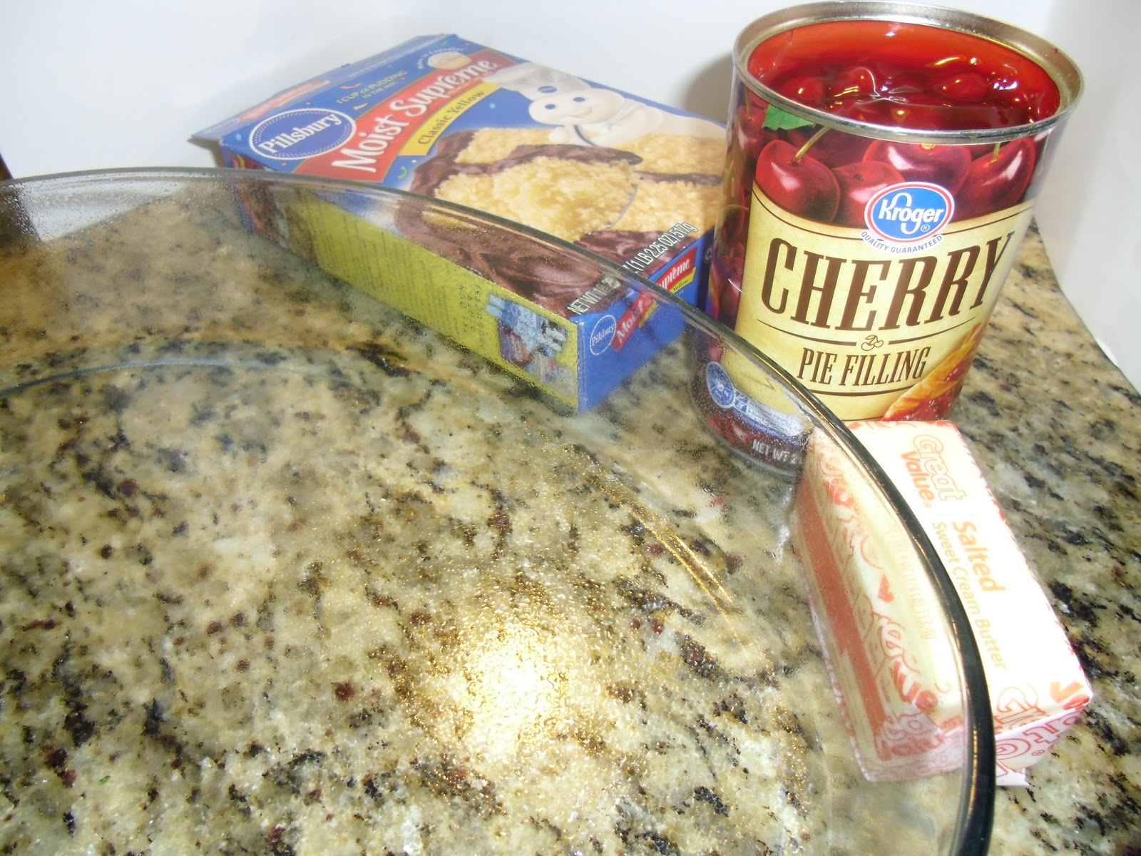 | EasyIngredients for Cherry Crisp…..minus the crushed pineapple.. |