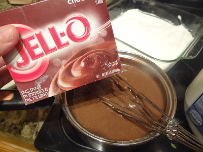 1 Large package instant chocolate pudding mixed as pie recipe on box