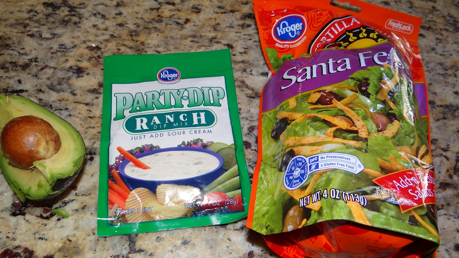 | I didn’t have ranch dressing packets on hand so substituted ranch dip instead….it wasn’t as flavorful….use the dressing packet for SURE! But these Santa Fe flavored tortilla strips were sooooo yummy on top of the Southwest Salad! |