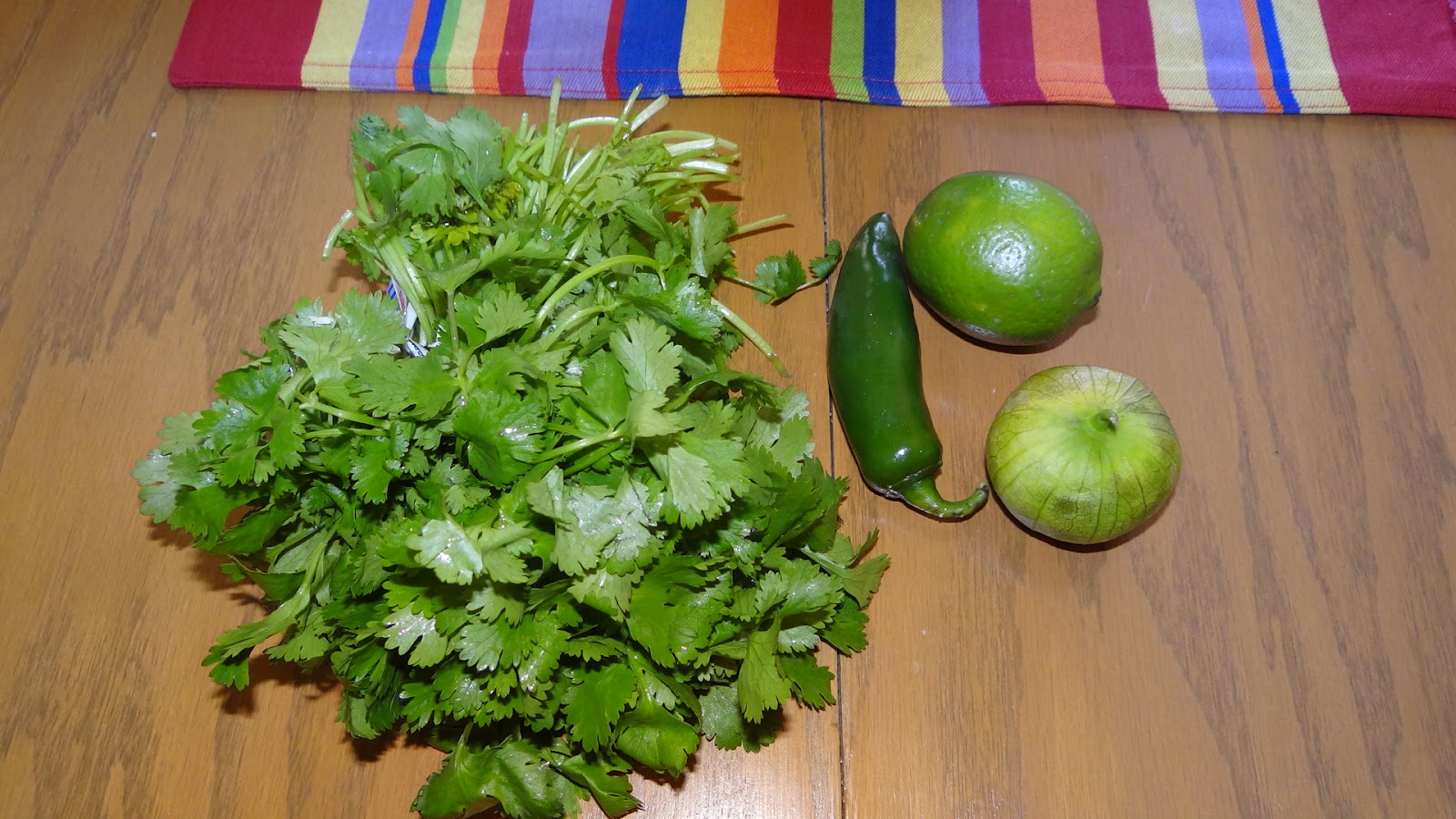 1 large or 2 small tomatillos (they are green and by the tomatoes)