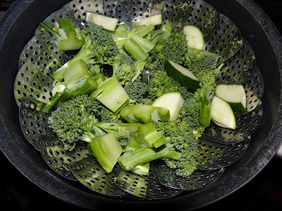 Steam your veggies…… I had broccoli and some leftover raw zucchini