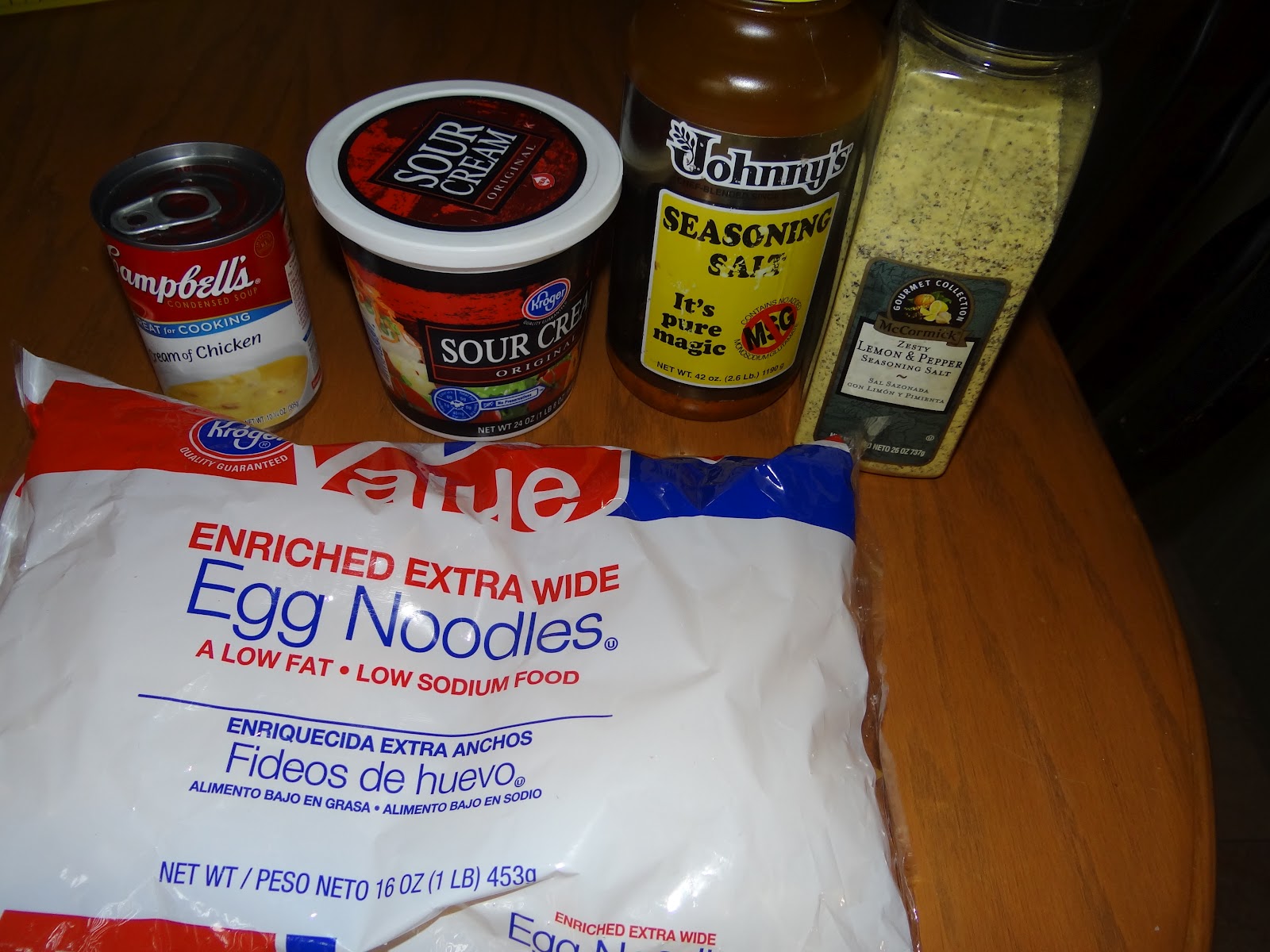 Some of my ingredients for the sauce, and wide egg noodles to spoon the yummy stuff over! |