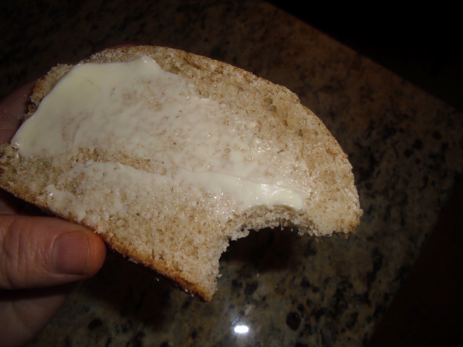 | Anyway, this wheat bread is real easy, yummy, and good for you! Wanna bite? |