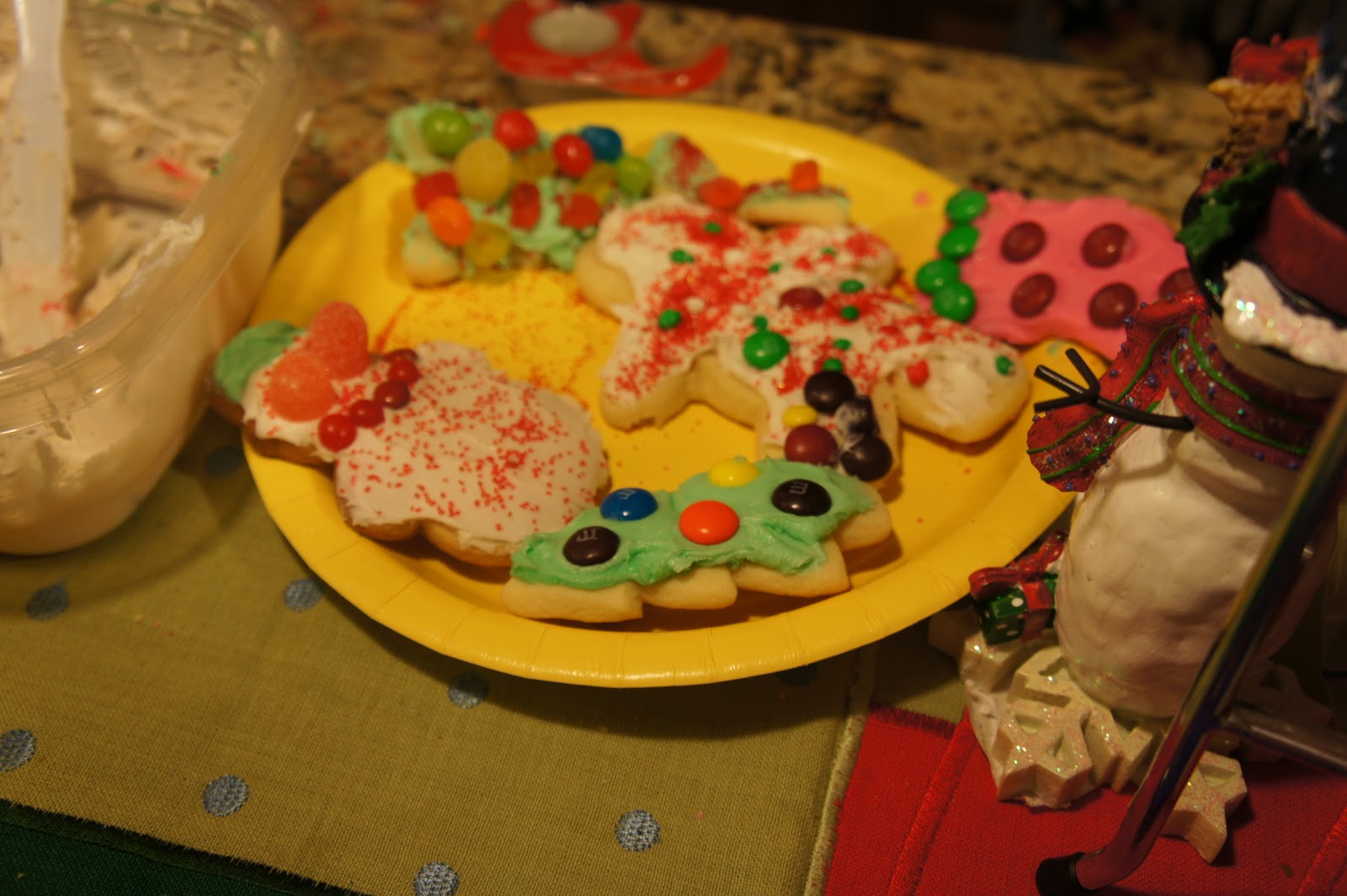 This is a fun tradition we’ve had in our family for many years. I do this in my classroom for the kids, either decorating sugar cones to look like green iced Christmas trees, or gingerbread men, or sugar cookies. And I bring the extra candy home for the kids to do a few decorative cookies too. It’s been going on for probably 15 years.