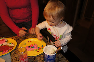 | My granddaughters getting into frosting their sugar cookies |