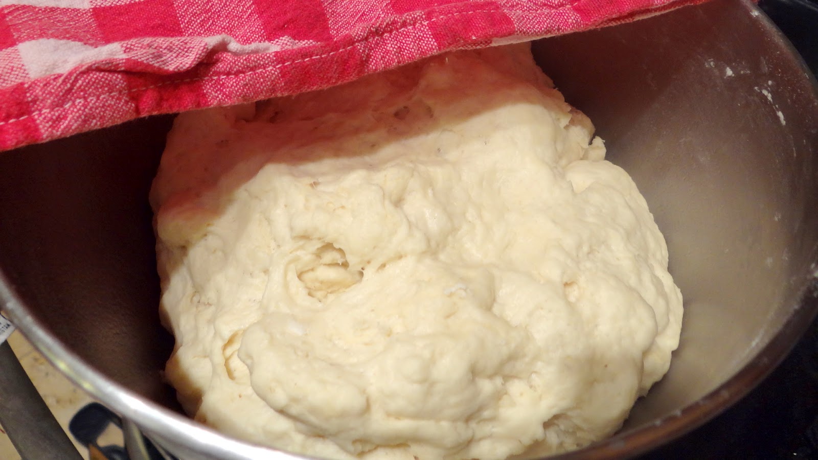 | Here are mine kinda kneaded and waiting to be put into the pan….took 5 minutes to make and roll! |
